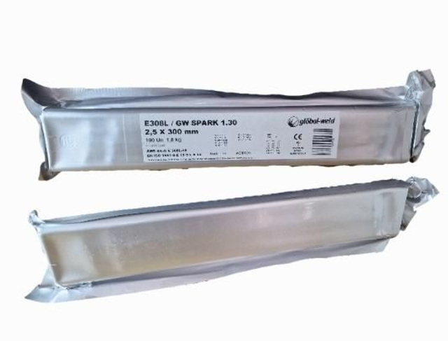 Electrodo con revestimiento de rutilo y muy bajo en carbono, para soldadura de inoxidables de tipo 18Cr/10Ni, estabilizados y no estabilizados con Ti o Ni. Buena soldabilidad, fusión suave y fácil limpieza de escoria. Apto para inox 302, 304, 304L, 308 y 308 L. AC/CC+. Soldadura plana, en rincón, ascendente, horizontal y bajo techo.