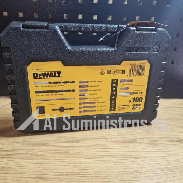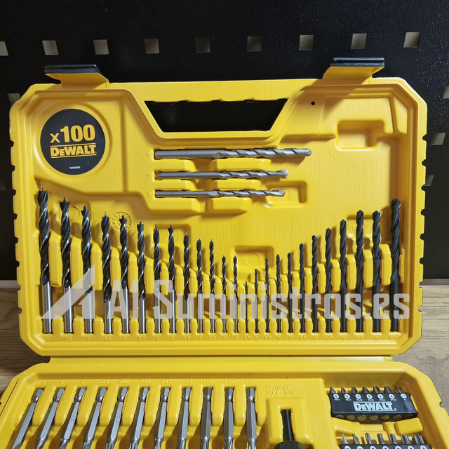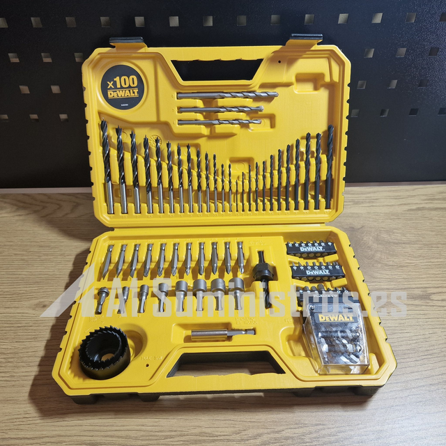 Juego surtido de brocas y puntas de destornillador. Incluye puntas adecuadas para la perforación en metal, madera, plástico y mampostería junto con los tamaños de destornillador más comunes.